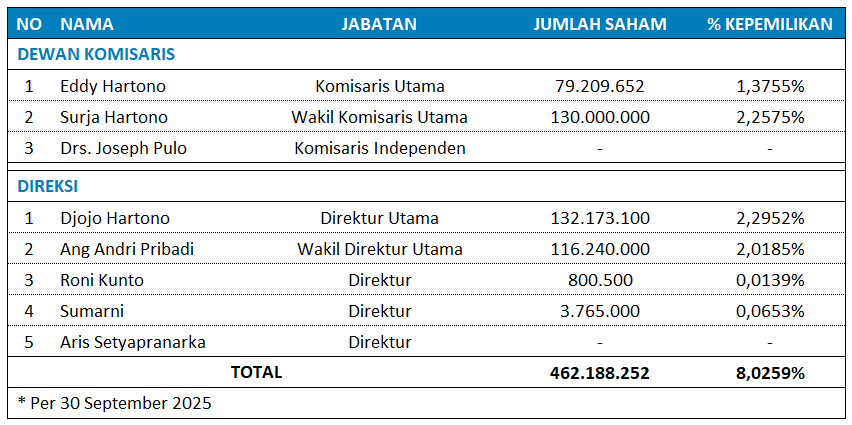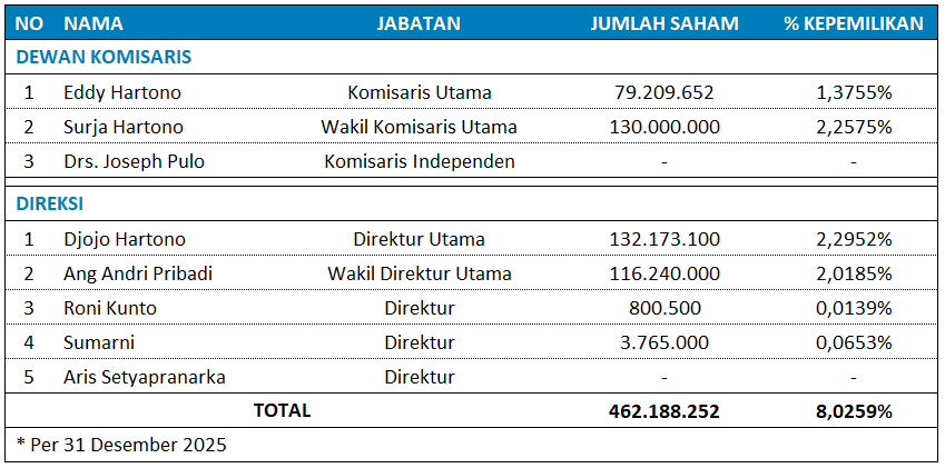 Kepemilikan Saham Dewan Komisaris dan Direksi