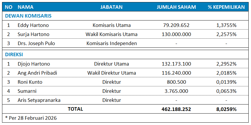 Kepemilikan Saham Dewan Komisaris dan Direksi